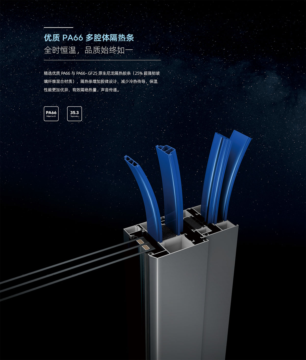 - 框 、挺、扇均為矩形腔體設計,配合注膠角碼和帶注膠功能連接件,連接牢固, 框架結構穩定。